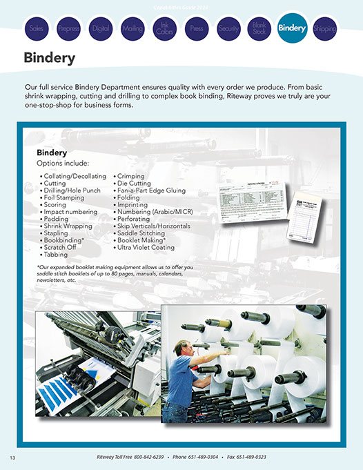 Our company is dedicated to change as our industry product mix changes. Today’s product lineup and client demands have extended the boundaries of typical products. We have listened to our customer and followed their lead. Recently, we have purchased new equipment, and have doubled our manufacturing and warehouse spaces. As we focus on developing new products and services to meet dealer and printer’s growing, changing demands, we remain committed to exceeding customer expectations. Our ability to handle quick turnarounds, and our high-quality production has made Riteway a smart choice for all your business form needs.